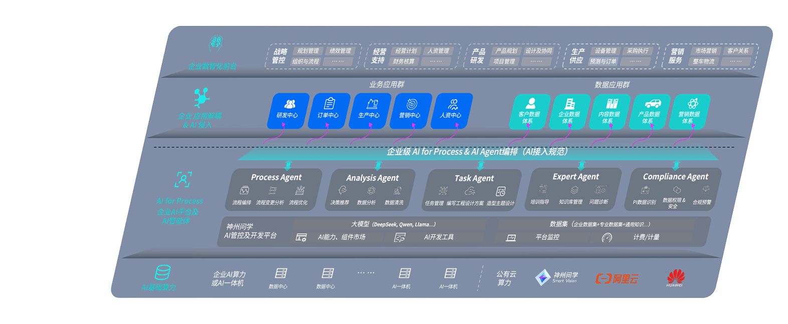 端到端的一站式AI工作空间深度融合了从企业战略规划到日常经营的全流程业务板块,,定向解决车企内部领域多、、、、部门多、、、链条长、、场景碎片化等难题,,,,支持车企快速构建以AI为核心的生产力写作体系,,实现任务执行与AI能力的无缝集成与交互